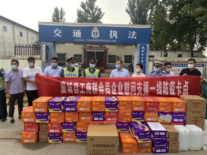 2021年8月5日,虞城县统战部副部长、工商联党组书记李晓霞,虞城县工商联主席李长远及爱心企业50余家向虞城县汽车站卡点、虞城县火车站卡点、田庙(豫鲁界)卡点、镇里固(豫皖界)卡点、界沟(豫皖界)卡点、刘店高速出入口、木兰高速出入口等十几余处卡点进行慰问,送去了饮用水、方便面等物资,为打赢疫情防控阻击战提供有力的后方支持。